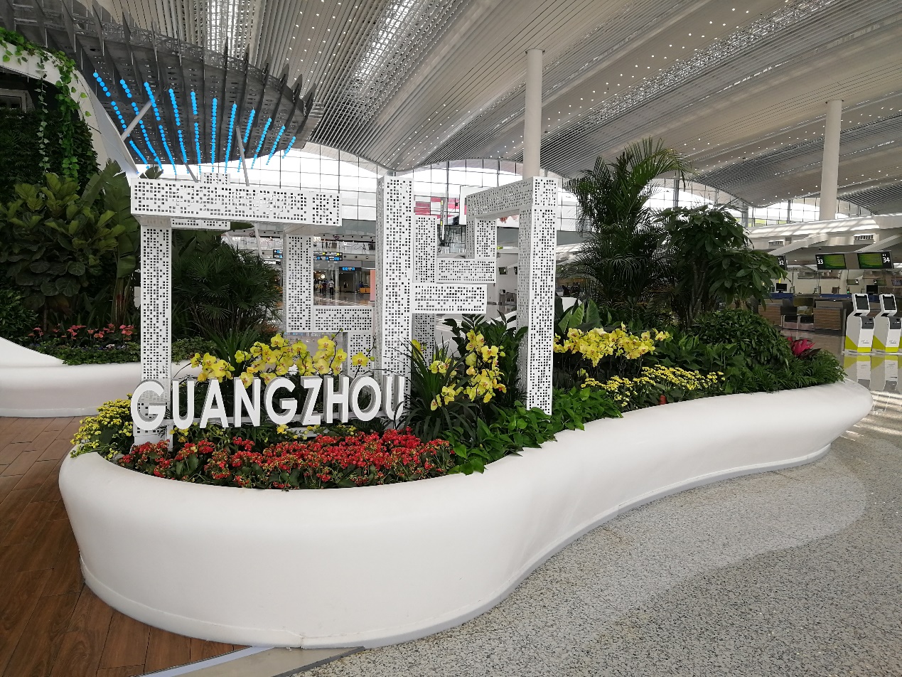 注重環(huán)保生態(tài)與人文景觀設(shè)計(jì):或許是參考了亞洲最佳機(jī)場----樟宜機(jī)場的設(shè)計(jì),這次T2航站樓非常重視生態(tài)設(shè)計(jì)。出發(fā)大廳中央就有宛如花園的大片綠植,給機(jī)場增添了多一分生機(jī)~旁邊還立有閃閃發(fā)光的“廣州”二字。