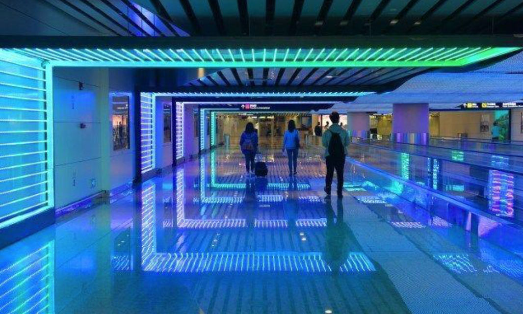 適合“拍照打卡”的好所在:續(xù)T1視覺體驗(yàn)創(chuàng)新,在T2靠近B171登機(jī)口處,有華為通過視覺燈光秀打造的夢幻“云之道”,是個(gè)非常適合拍照打卡的好地方~