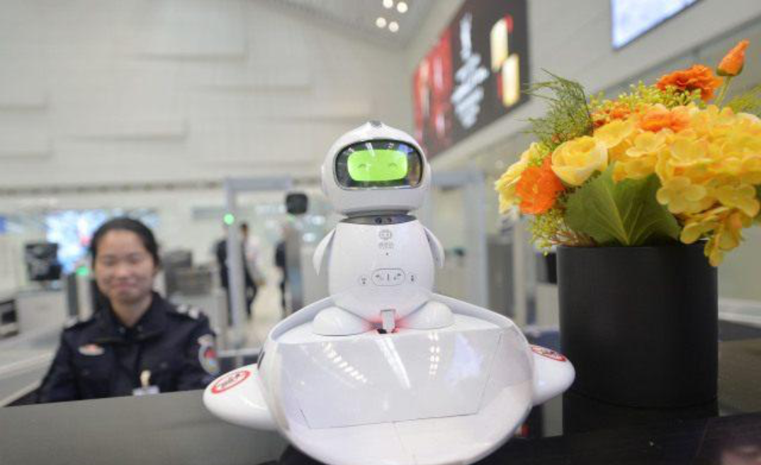 十分可愛的安檢小機(jī)器人,時(shí)刻播放安全提示;