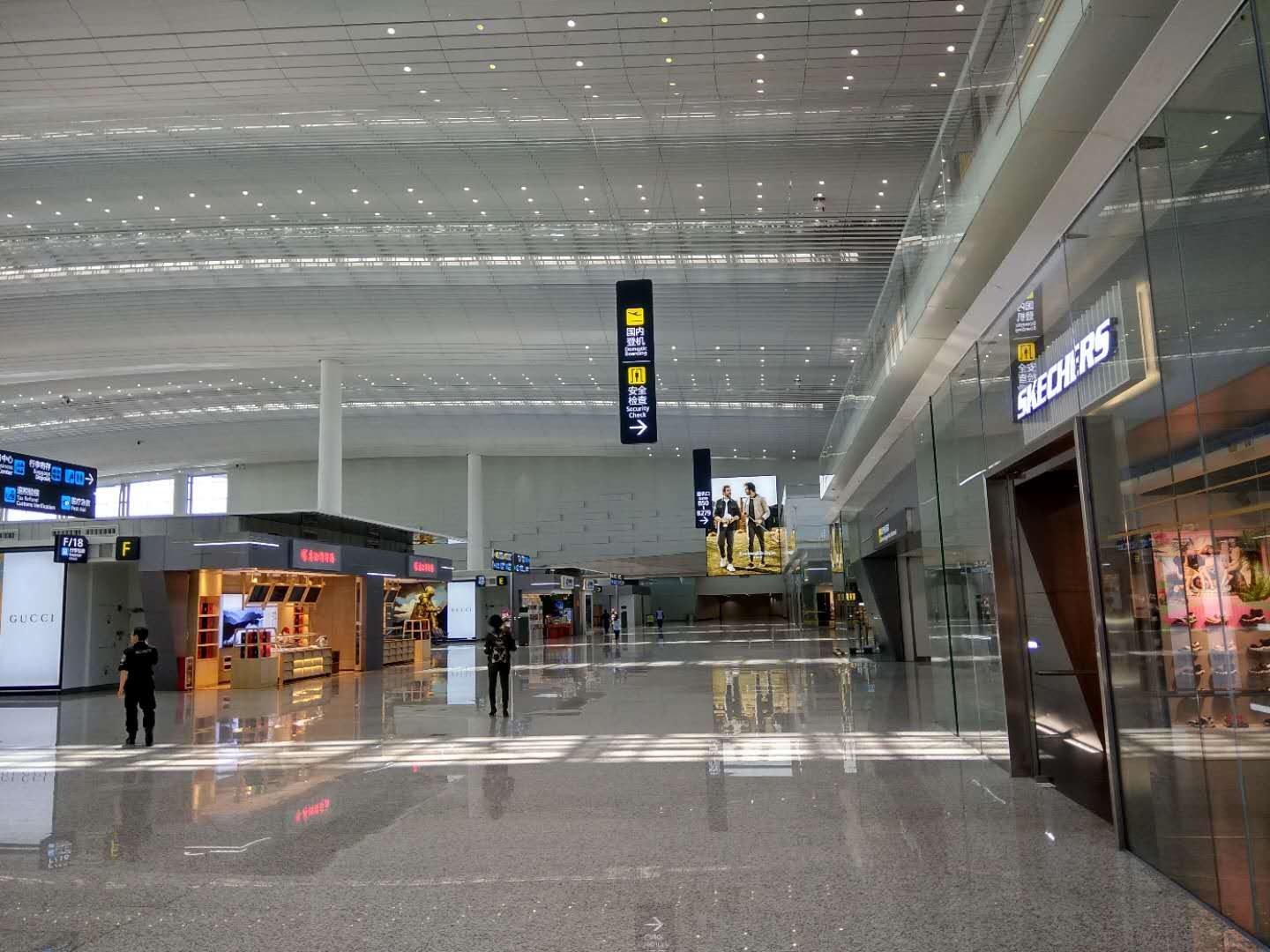 除了直立式的指引標(biāo)識外,T2航站樓內(nèi)也充分使用了懸掛式的指引標(biāo)識