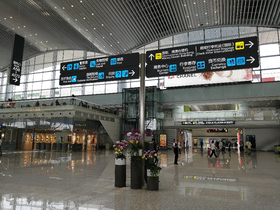 T2航站樓標(biāo)識指引的設(shè)計(jì)較為醒目,顏色搭配、燈光亮度也恰到好處,提供的信息已經(jīng)基本覆蓋了航站樓內(nèi)的所有重點(diǎn)設(shè)施,旅客基本上通過標(biāo)識指引就可以找到自己需要的設(shè)施。