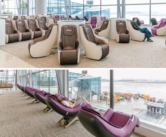 此外還有大片的付費(fèi)按摩椅,掃碼即能啟動。邊享受按摩邊在落地窗前看飛機(jī)起降也是非常獨(dú)特的體驗(yàn)~