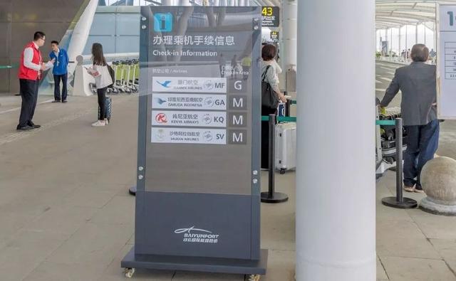 在每個(gè)值機(jī)島的隔壁,都設(shè)置了指引標(biāo)識牌