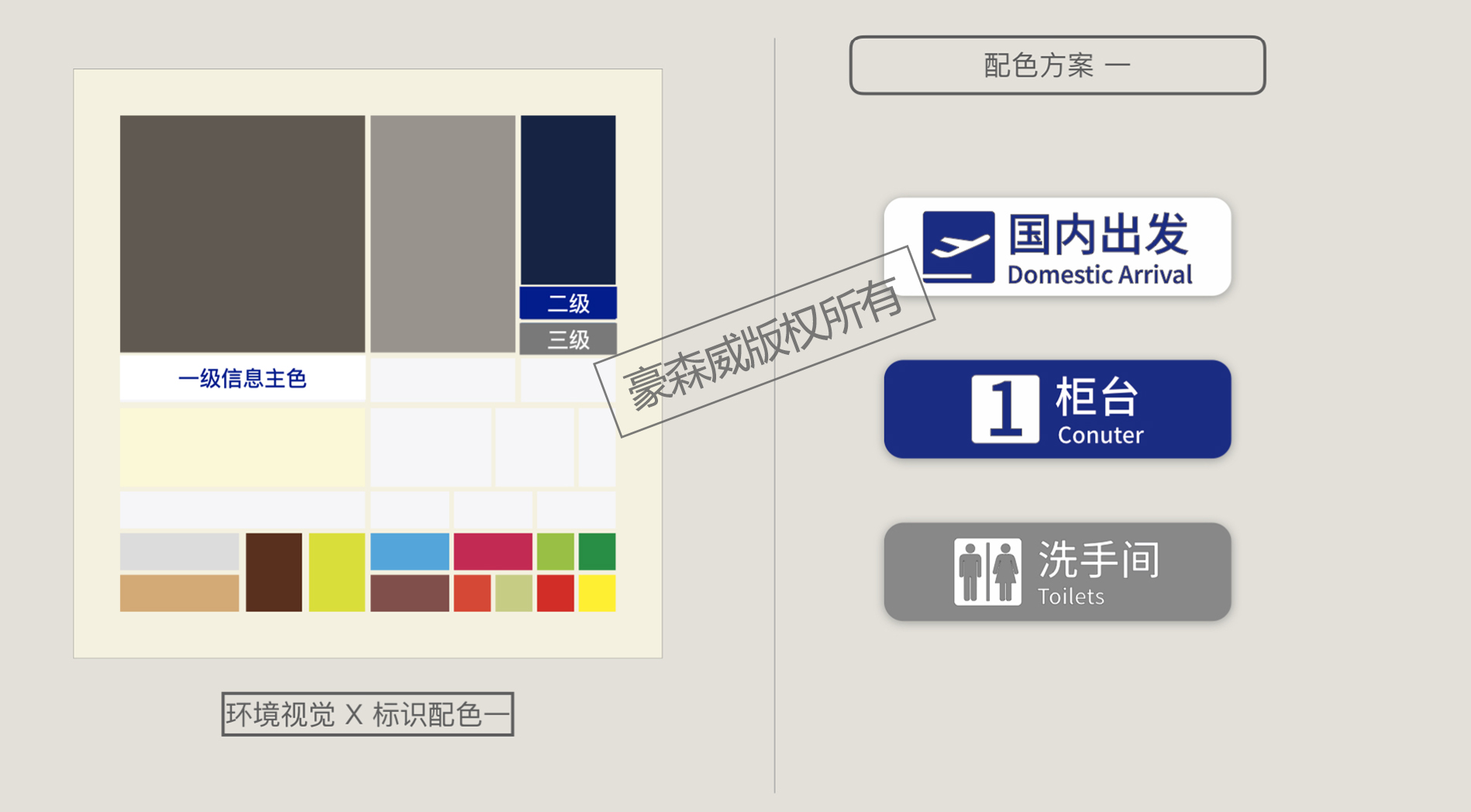 綜上所述,結(jié)合建筑色彩特點及內(nèi)部色系特點,根據(jù)調(diào)整后的模型,芒市機場導(dǎo)向標(biāo)識的主配色不但擁有與大環(huán)境及現(xiàn)有基礎(chǔ)配套設(shè)施和諧統(tǒng)一的視覺效果,而且在合規(guī)的前提下,明顯區(qū)別于其他機場,從而形成自已的特色。導(dǎo)向標(biāo)識系統(tǒng)整體明亮度大幅提升,更利旅客第一反應(yīng)識別。