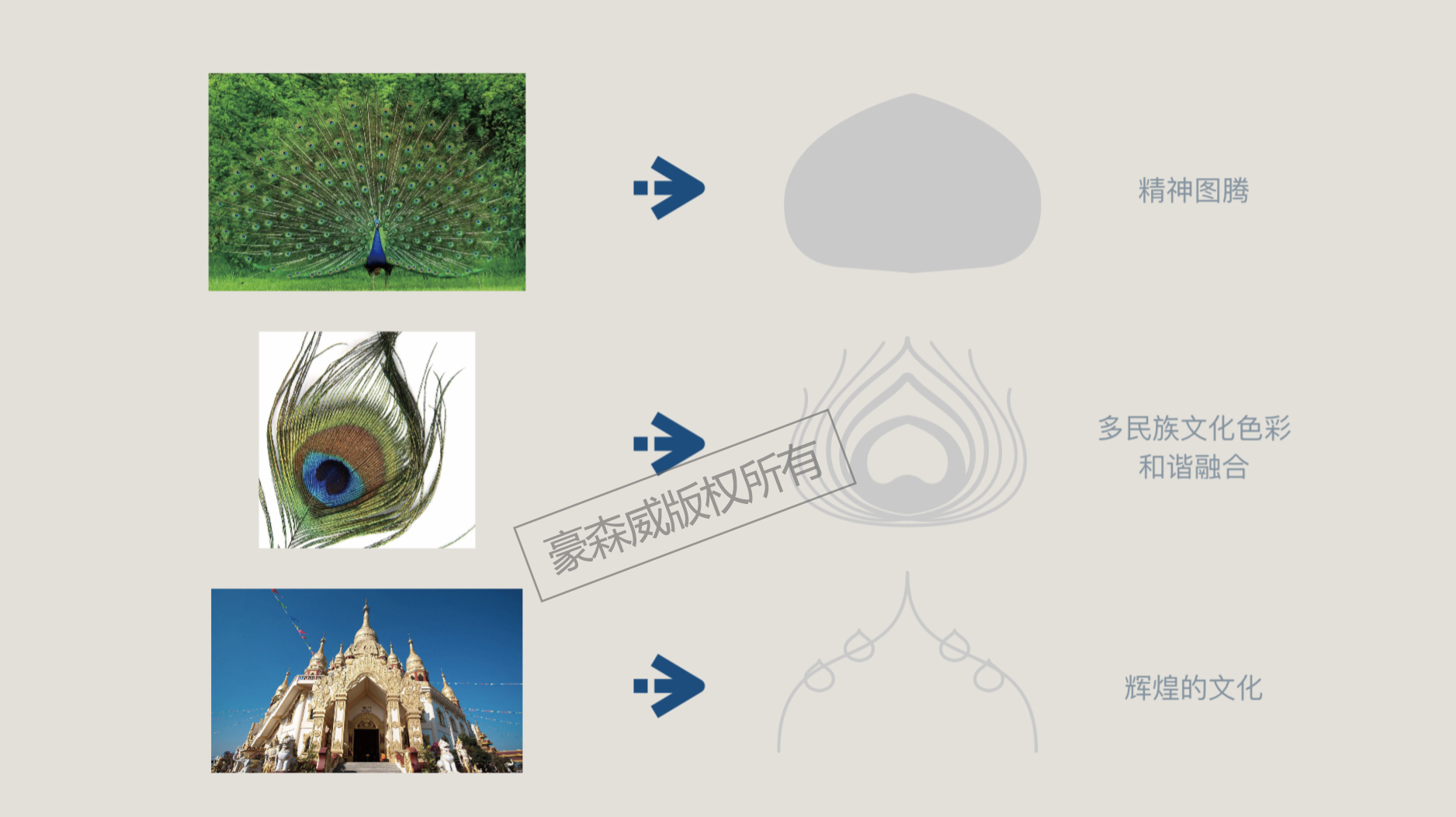 在云南機場集團芒市機場定位于“打造泛區(qū)域精致人文機場”又是旅客了解當(dāng)?shù)厝宋娘L(fēng)俗的重要印象門戶前提下,設(shè)計團隊提出了在功能性標(biāo)識中增加輔助裝飾底紋,讓旅客一下飛機即能感受到當(dāng)?shù)氐拿袼罪L(fēng)情,同時又具有國際范,于是在創(chuàng)作和設(shè)計底紋圖樣過程中,豪森威設(shè)計團隊進行了當(dāng)?shù)孛袼孜幕娠L(fēng)。