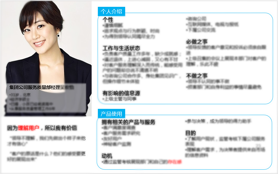 北京的霧霾天氣讓“你我牽著手,可惜我卻看不到你的臉”,品牌亦如此。企業(yè)經歷很長時間積累了大量的用戶,但卻不知道他們到底是誰?有何特點?價值觀如何?使用行為如何?對產品和服務的態(tài)度又是怎樣的?良性的品牌研究跟蹤體系并不單純是你知道你的用戶滿意狀況,還要知道自己的用戶畫像(persona)是什么?只有拋開個人喜好,聚焦目標用戶動機,把握客戶的真實特點和行為軌跡,構建出準確的目標用戶畫像,才能針對目標群體實施不同的營銷和滿意度提升策略,才能讓客戶忠誠度提升工作更具實效!