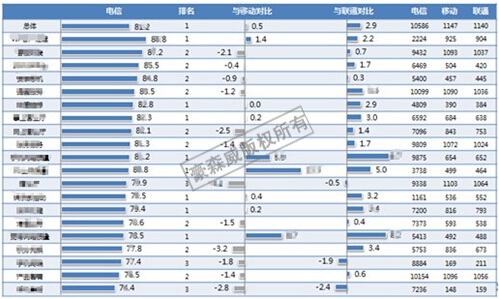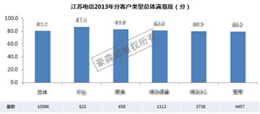 根據(jù)樣本調(diào)查分析,江蘇電信2013年總體滿(mǎn)意度81.2分,較去年稍有下降。其中行業(yè)客戶(hù)滿(mǎn)意度最高,寬帶客戶(hù)滿(mǎn)意度最低。從地市方面看,滿(mǎn)意度得分較均勻,基本在80分以上。