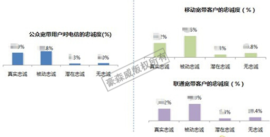 從江蘇電信觸點(diǎn)與同行業(yè)對(duì)比分析看,手機(jī)網(wǎng)絡(luò)質(zhì)量、3G上網(wǎng)質(zhì)量、寬帶網(wǎng)絡(luò)質(zhì)量排名第一,優(yōu)勢(shì)明顯,但與移動(dòng)對(duì)比,大多數(shù)觸點(diǎn)得分低于移動(dòng);與聯(lián)通對(duì)比,大多數(shù)觸點(diǎn)得分高于聯(lián)通。不過(guò)在忠誠(chéng)度上,電信寬帶客戶(hù)的真實(shí)忠誠(chéng)比例遠(yuǎn)高于移動(dòng)和聯(lián)通。 (豪森威觀點(diǎn):即便是在競(jìng)爭(zhēng)相對(duì)較少的市場(chǎng)中,為客戶(hù)提供非凡的價(jià)值也是讓客戶(hù)持久保持滿(mǎn)意和忠誠(chéng)的唯一可靠方法。)