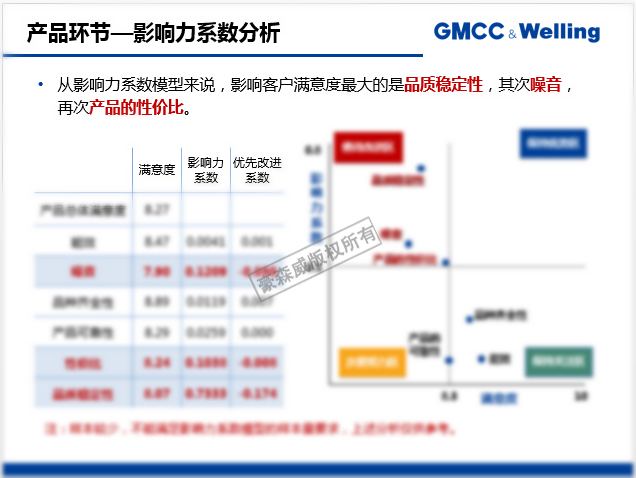 作為一名研究人員,我看到很多品牌跳過產(chǎn)品或服務(wù)開發(fā)的量化階段,在還沒有了解到客戶看重什么,也沒有進(jìn)行各項(xiàng)管理指標(biāo)對用戶體驗(yàn)和用戶滿意度的貢獻(xiàn)路徑分析與檢驗(yàn),也就是說沒有將管理指標(biāo)進(jìn)行有效的分類。結(jié)果,每個(gè)指標(biāo)的表現(xiàn)都需要關(guān)注,但指標(biāo)后面是企業(yè)不堪重負(fù)的成本投入,可一年下來用戶的感知并沒有得到明顯的改善甚至反而倒退了,市場的基礎(chǔ)和利潤根本無法暢享。在持續(xù)11年的客戶滿意度研究的基礎(chǔ)上,豪森威公司充分利用IFAM 影響因素分析模型、PTIM優(yōu)先改進(jìn)矩陣等研究分析技術(shù),幫助美芝(GMCC)公司徹底地厘清管理的價(jià)值要素,做到了好鋼用在刀刃上,把服務(wù)做到了客戶的心坎里,恰當(dāng)且略為領(lǐng)先的滿意度分值與經(jīng)濟(jì)的服務(wù)成本形成了良好的互動管理關(guān)系,成就了世界一流企業(yè)彪悍的贏利能力。