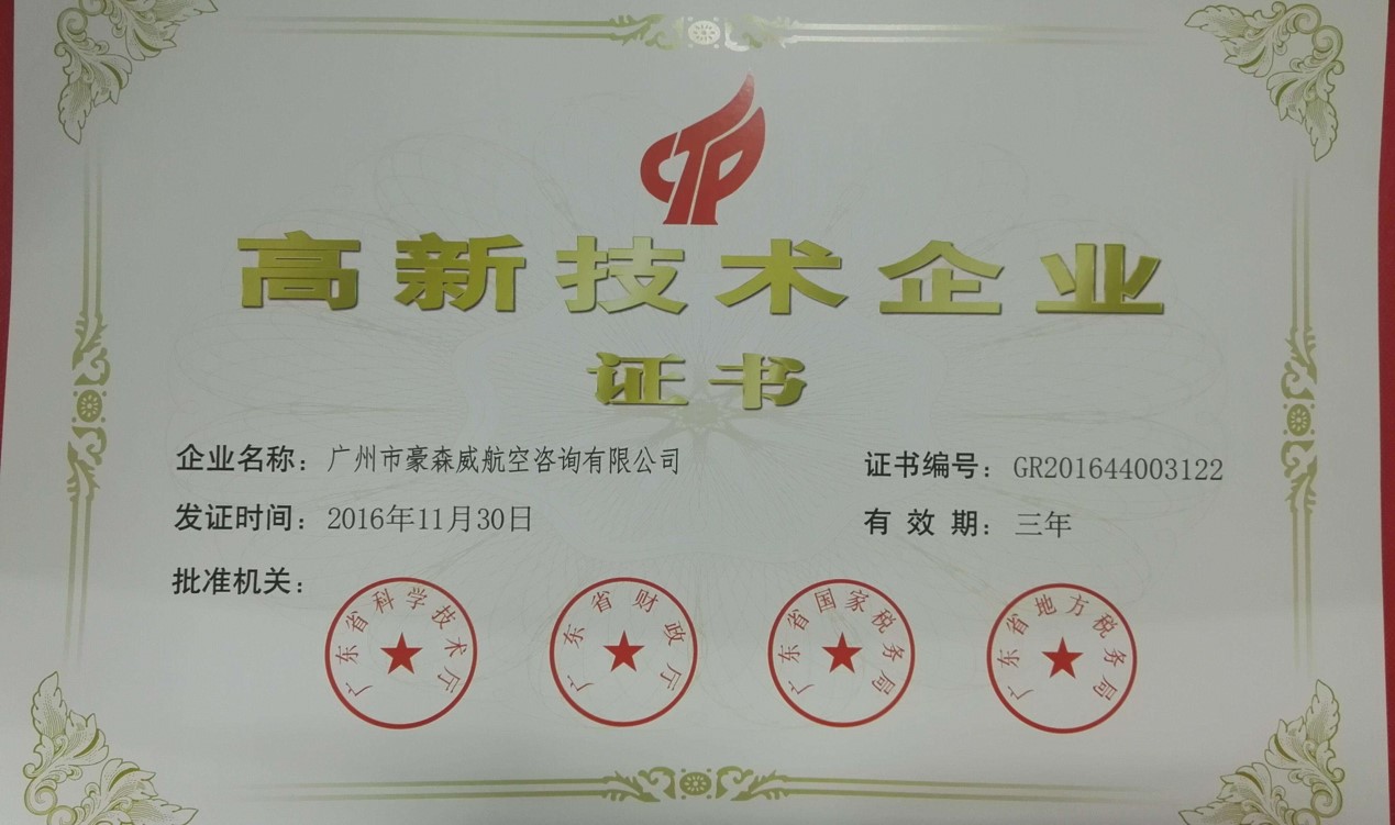 根據(jù)《高新技術(shù)企業(yè)認(rèn)定管理辦法》(國(guó)科發(fā)火〔2016〕32號(hào))和《高新技術(shù)企業(yè)認(rèn)定管理工作指引》(國(guó)科發(fā)火〔2016〕195號(hào))有關(guān)規(guī)定,廣州市豪森威航空咨詢有限公司經(jīng)企業(yè)申報(bào)、專家審評(píng)、公示等程序,于2016年11月30日進(jìn)入廣東省2016年第一批認(rèn)定高新技術(shù)企業(yè)名單。